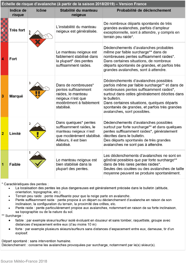 Le risque d’avalanche est noté sur une échelle de 1 à 5 :1, le risque est faible, 5, reste sous la couette.